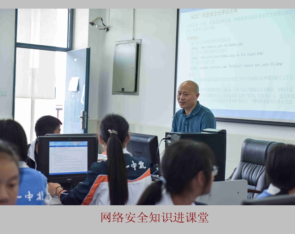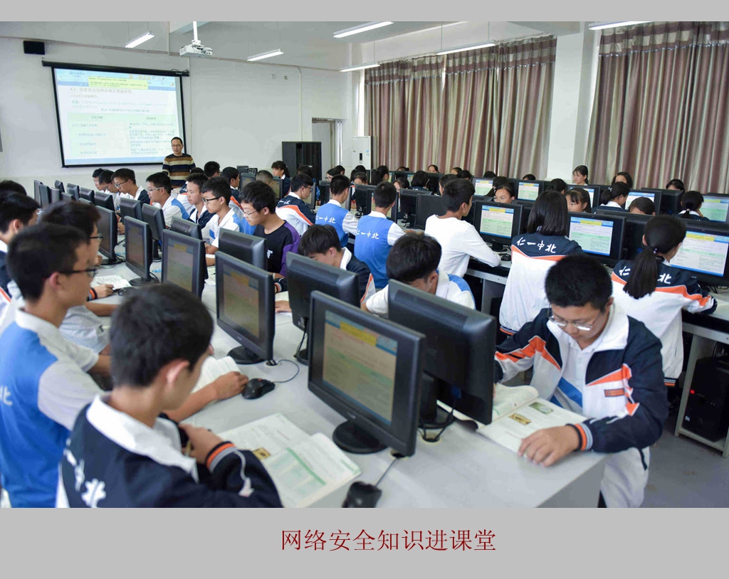 3、开展网络安全知识进课堂活动。全校的高中信息技术课统一安排一节《网络安全知识》为主题的专题讲座,向全校学生宣传网络安全常识。