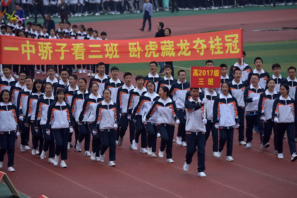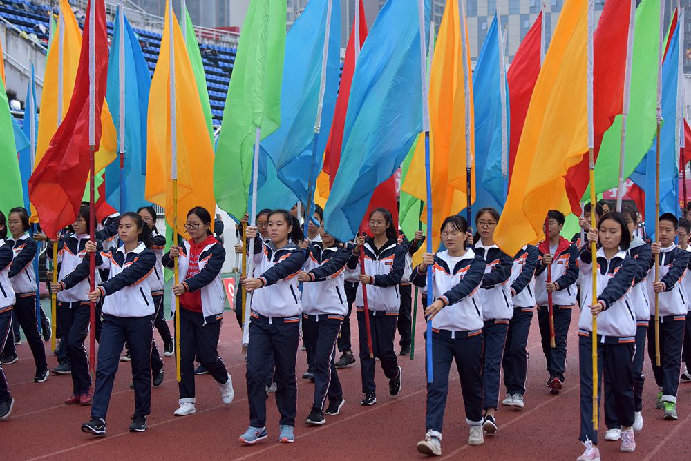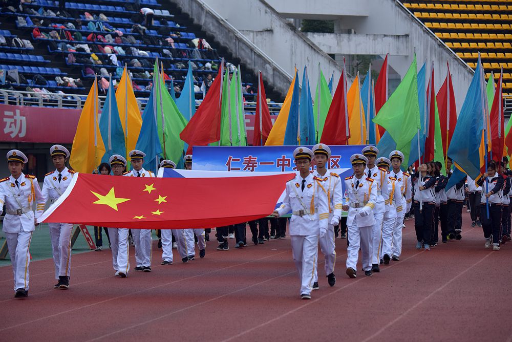凉风习习,吹不散仁寿一中北校区学子如火的运动热情。伴随着振奋激昂的《运动员进行曲》,由学生组成的护旗队托拥着校旗、运动会旗,迈着铿锵有力的步伐昂首阔步踏入会场。随后,彩旗队、各班学生举着班牌,展示标语口号,以饱满的精神,矫健的步伐,嘹亮的口号,依次列队通过主席台,接受检阅。充分展示了一中学子的青春活力与激情,也充分展现了师生们积极向上、团结拼搏的精神风貌,拉开了新校区开幕式的帷幕。