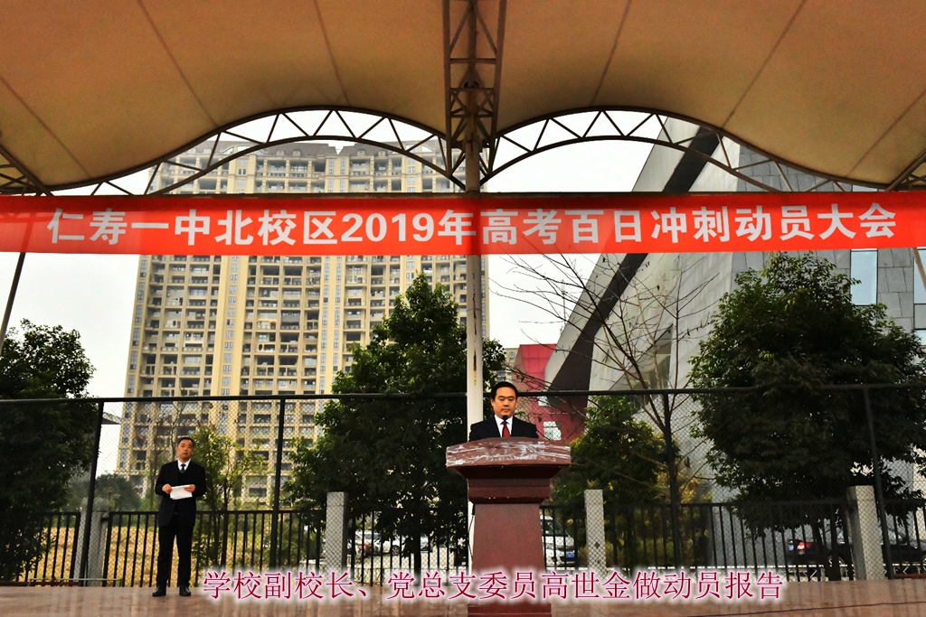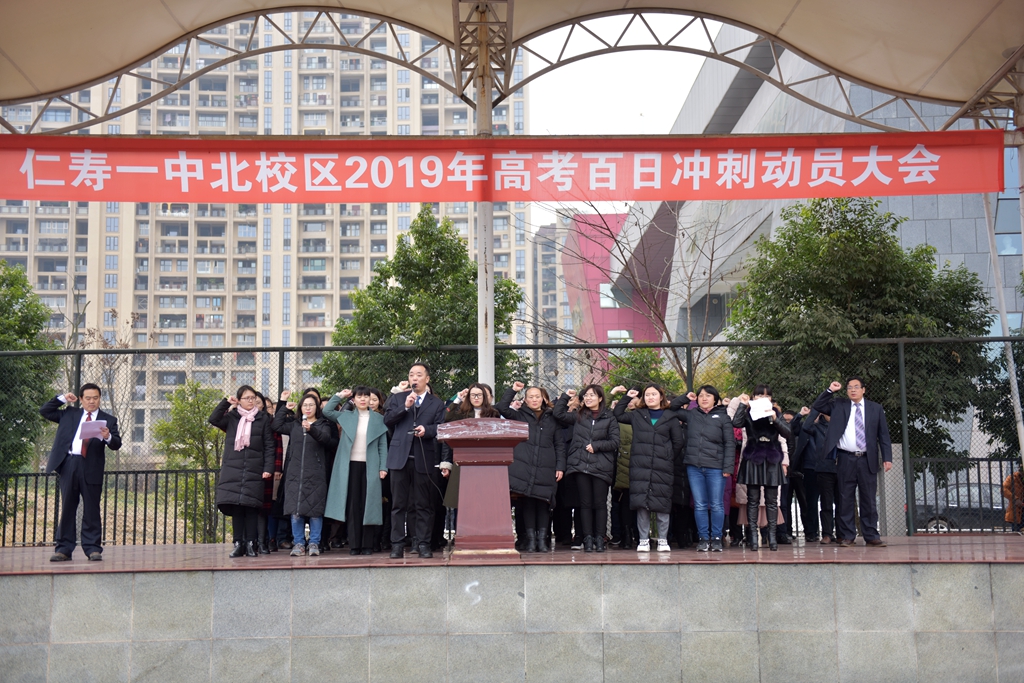 2月26日上午,仁寿一中北新校区在学校运动场隆重举行2019高考百日冲刺动员大会,吹响了冲刺百日的进军号,发起了圆梦青春的动员令。