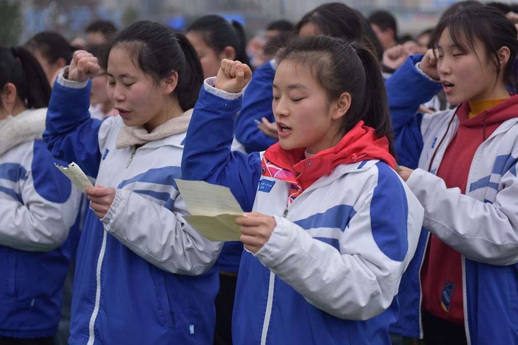 最后,高三全体教师上台宣誓,庄严承诺在这最后一百天里做好学生坚强后盾,为高考保驾护航,决战百日,倾尽全力。在学生领誓人唐丽萍同学的带领下,全年级学生用坚定、自信的声音许下了对高考宣战的誓言,誓要鼓足信心、勇往直前、拼搏百日、用赤诚的心与百天较量,让六月见证誓言,让六月的校园成为喜悦、欢乐的海洋!