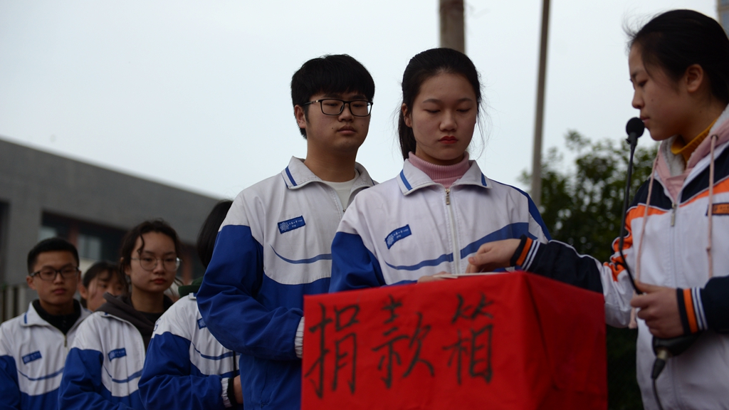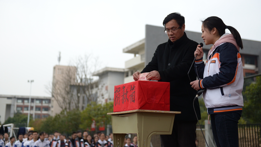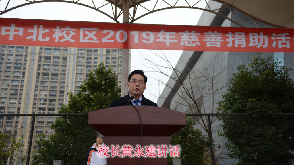 一年一次的仁寿县“三.五慈善捐助日”到来了,仁寿一中北校区全体师生,响应号召,课间操时间在仁寿一中北校区体育场进行了捐助活动,在校政教处、学生会的组织下,学校校长黄永建作了主题讲话。