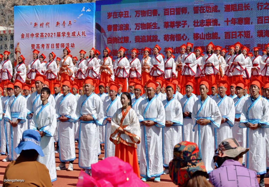作为特邀单位之一,仁寿一中北校区全程参与了金中“‘新时代,新青年’高2021届学生成人典礼暨高考百日誓师活动”。该活动于2021年3月19日举行,金川县委、县政府、县教体局领导亲临现场,高三年级家长、教师、学生全员参与。整个活动由“春暖校园”“加冠及笄”“百日誓师”“继往开来”四个部分组成,形式多样,内容丰富,组织有序,融艺术性与教育意义于一体,充满浓郁的民族风情和地域特色,全面展示了金中学生良好的综合素养和昂扬向上、追求卓越的精神风貌,展现了金中迁入新校区后大力实施素质教育、特色发展的最新成果,表达了金川上下同舟共济、卧薪尝胆、誓夺2021年高考辉煌的坚定信念,反映了金川人民对美好教育的向往,感人至深又催人奋进,获得了与会人员的高度评价,也对我校校园文化建设、学生个性发展、组织大型活动诸方面以有益启示。