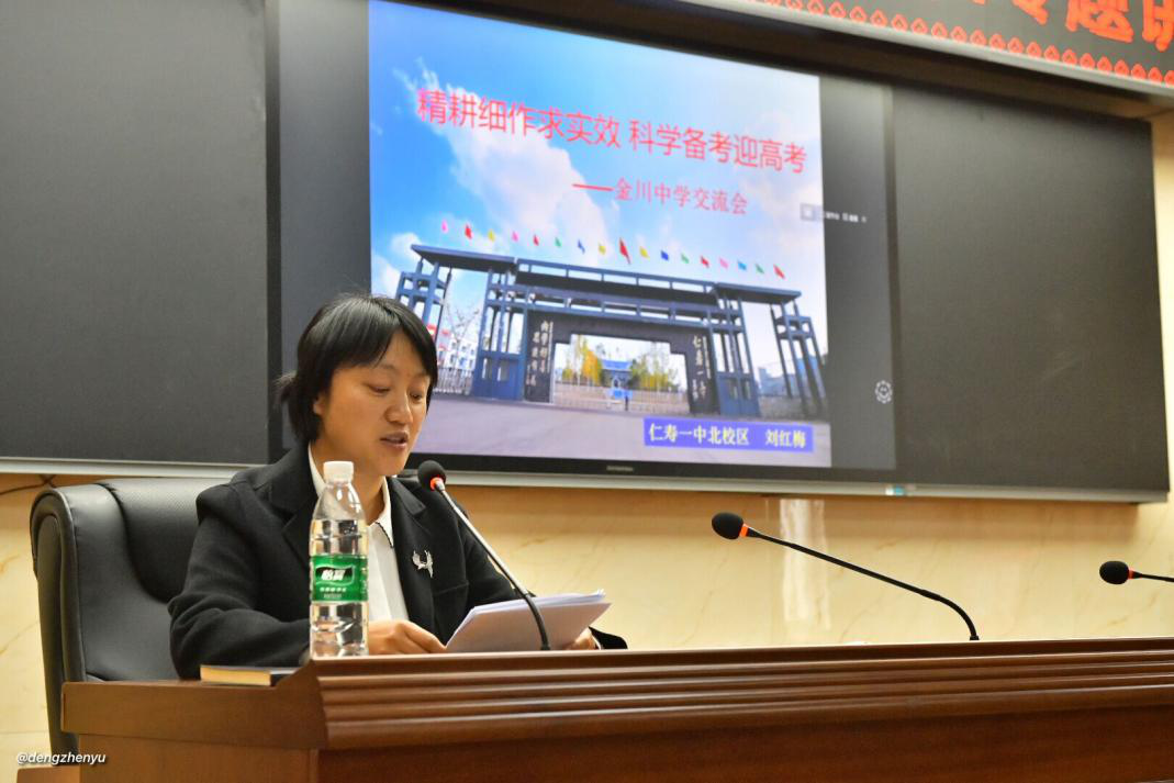 教育质量是学校的“生命线”。成行前,金中提出希望就高三毕业班后期管理措施做经验交流,由我校对金中高三年级组举办一次高三后期管理讲座。为确保讲座内容详实、操作性强,高世金校长亲自主持召开专题会议,讨论讲座内容和重点,拟定题为《精耕细作求实效,科学备考迎高考》的讲稿,并确定由具有丰富高三管理和教学经验的刘红梅主任主讲。在两个多小时的讲座中,刘主任用富有激情的语言、温柔的笑容、到位的点评,从年级组、备课组、班主任、任课教师以及学生五个方面详细介绍了我校的做法、经验,毫无保留,诚意满满,会场气氛融洽,交流顺畅。金川中学的老师们认真听取,会后纷纷表示此次讲座让自己收获颇多,对今后的教学工作有深远的指导意义。