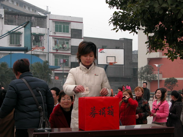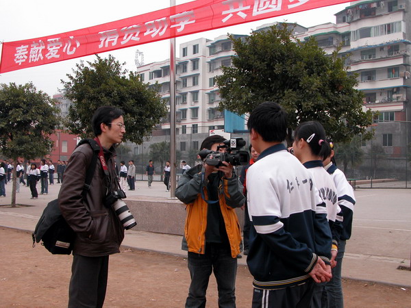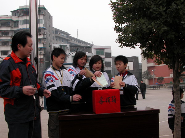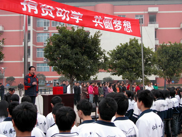 中央电视台《聚焦三农》栏目的谭记者和经济日报高记者,路过仁寿一中时也被仁寿一中人捐助农村贫困生的活动所吸引,他们走访了仁寿一中,也被现场捐助的气氛所感染,高记者带头向捐助箱投入了二百元,谭记者更是认捐了五个学生高中阶段的学习费用。