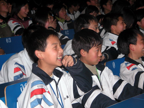 评委们在认真观看表演 学生观众