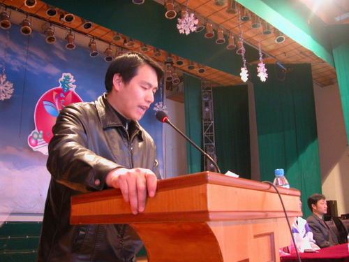 政教处副主任张波同志主持大会 学生会负责人陈权宣读《条列》