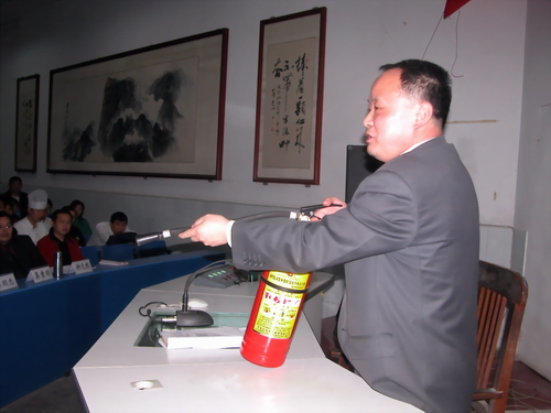保卫科(安全办)王绍先科长在培训会上作了题为《食堂消防和安全》的培训报告。他引举案例讲了食堂消防和安全的重要性;着重从食堂消防和安全的具体操作要求进行了培训,现场演示、培训了消防器材的使用;要求进一步增强安全意识,食堂消防和安全工作常抓不懈。