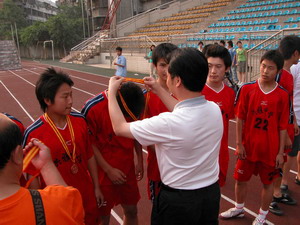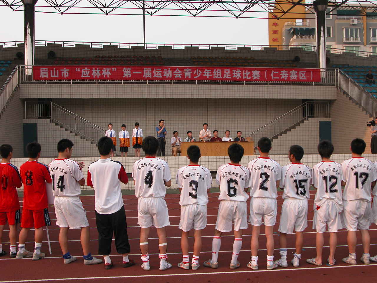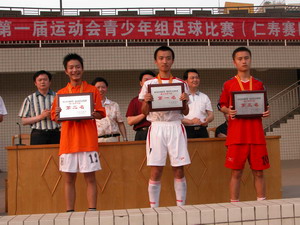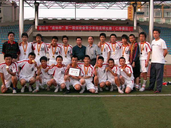 今天在刚刚结束的眉山市“应林杯”第一届运动会青少年组足球比赛中,代表仁寿县出战的,由仁寿一中高一学生为主力组成的代表队,获得冠军。在闭幕式上,眉山市副市长宋思彬,眉山市文体局局长李建章,仁寿县人民政府副县长王利清等分别给获得金、银、铜牌的仁寿县代表队、东坡区代表队,洪雅县代表队,以及获得体育道德风尚奖的彭山县代表队颁发了奖牌。