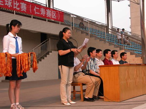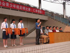 眉山市文体局科长王晓虎主持颁奖仪式 本次比赛裁判长宣布获奖情况... 眉山市副市长宋思彬给获得金牌的运动员颁奖 眉山市文体局局长李建章给获得银牌的运动员颁奖 仁寿县副县长王利清给获得铜牌的运动员颁奖 |