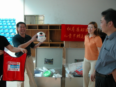 在六一儿童节到来之际,仁寿县副县长王利清、妇联主席曹桂花、副主席肖碧容、姚秀英、教育局副局长李长清、文体局副局长黄俊冲等一行人,来到仁寿一中,向仁寿一中青少年儿童赠送由国际联合会捐赠的七箱体育运动器材。儿童是祖国的未来,儿童身体健康最重要。