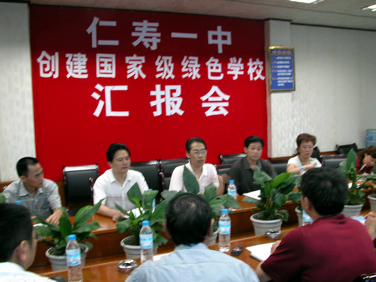 8月28日,眉山市、仁寿县环保局、教育局的领导来我校,对我校申报第四批国家级表彰绿色学校的工作进行检查指导。
