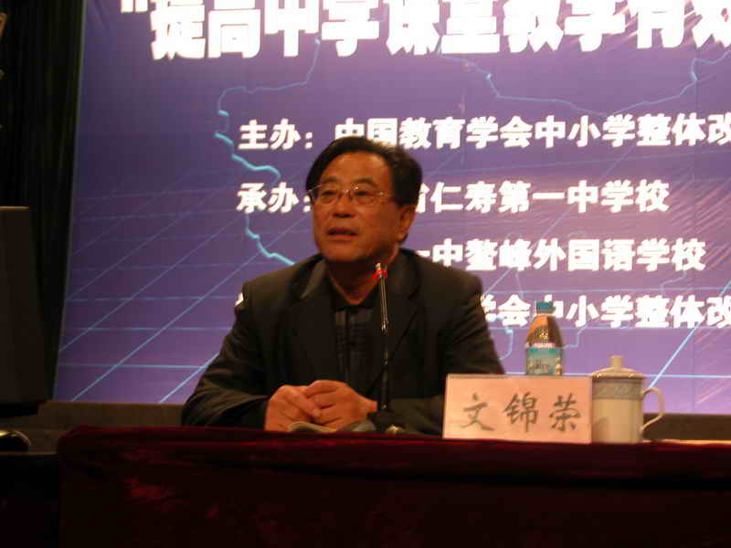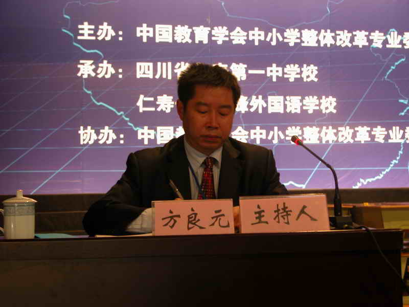 下午5:00,仁寿一中校长方良元同志主持了此次研讨会的闭幕式。中国教育学会中小学整体改革专业委员会副主任文锦荣作了总结。文主任从“会议主题鲜明、有针对性”“务本求实”“会务工作精细、精到”“会风很好”这四个方面充分肯定了此次研讨会的成功,并对大家提出希望与要求:静心反思,联系实际,将理论运用于实践。