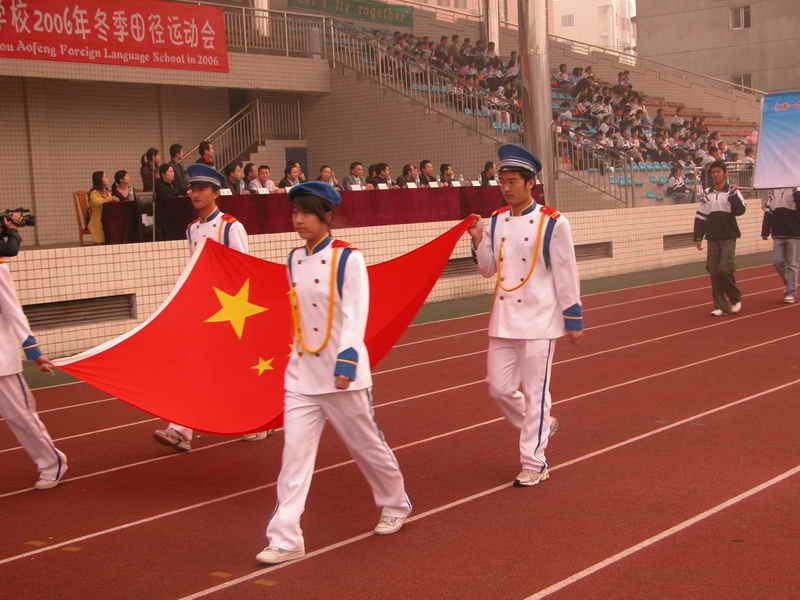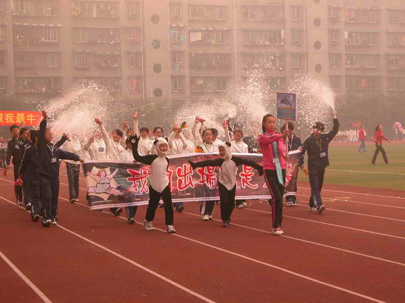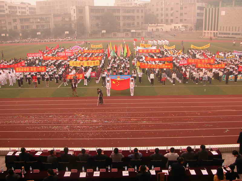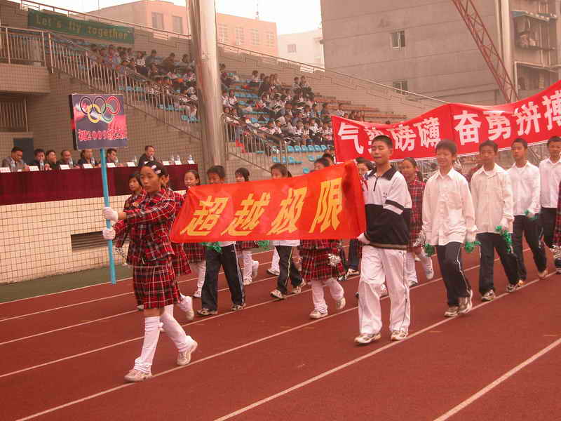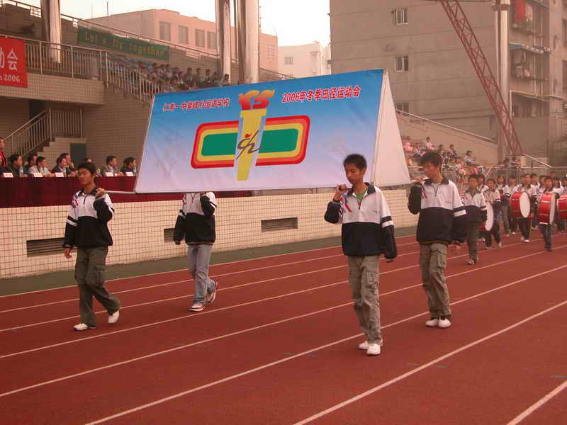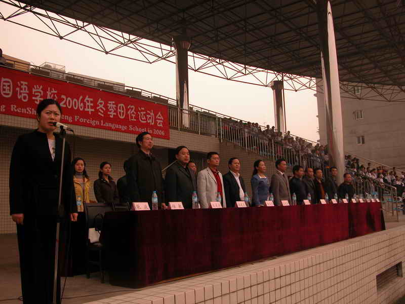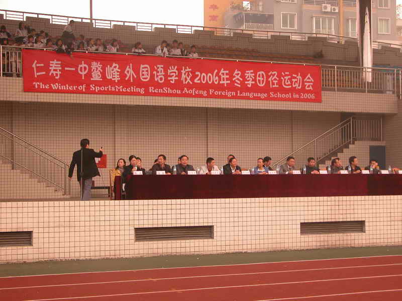 伴着悠扬的乐声,迎着秋日的暖阳,仁寿一中鳌峰外国语学校2006冬季田径运动会于11月9日在仁寿一中校本部体育场拉开序幕。全体行政领导出席了开幕式。