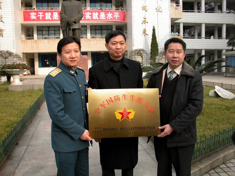 空军驻电子科技大学、西华大学选培办对我校进行空军国防生源基地学校的授牌,是我校办学史上的又一件大事,喜事。