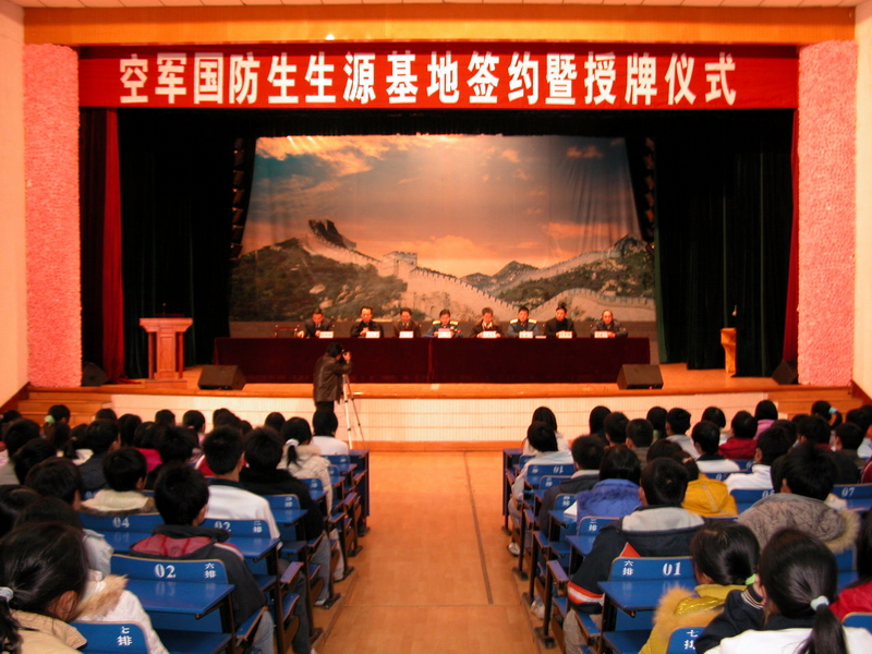 2007年1月17日下午3点半,在我校演播大厅,举行了空军国防生源基地签约暨授牌仪式。