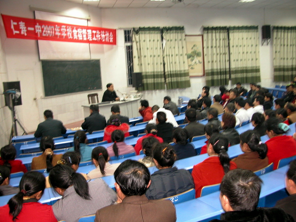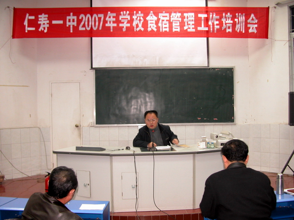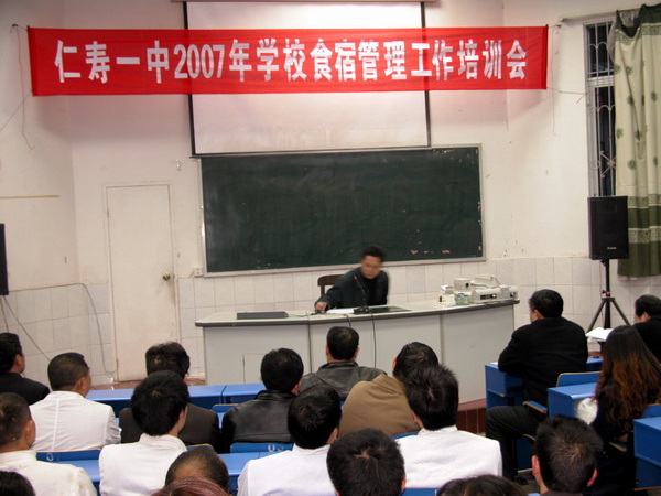 3月19日晚,仁寿一中召开了学校食宿管理工作培训会。总务处主任文曼宁主持了会议。代建一副校长到会并讲话。相关处室的行政、管理人员,负责食宿管理工作的经理、管理员和从业人员,供货商经理等130余人参加了培训会。