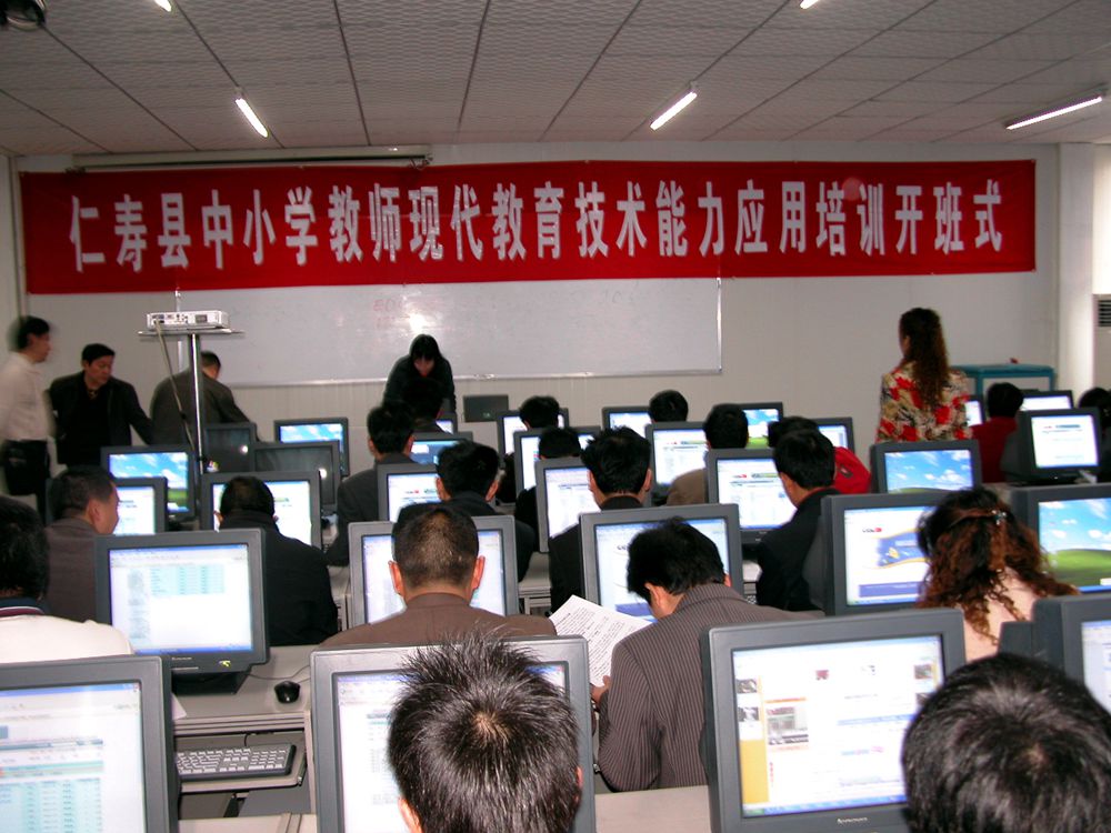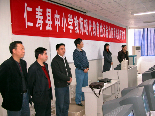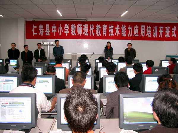 仁寿县教育局副局长王长久首先讲话,他在讲话中谈到,现代教育技术能力应用是现今教育手段的进步和更新,仁寿县中小学教师现代教育技术的应用还不够发达,希望通过这次的培训提高教师们的认识及应用水平,把先进的教育技术学到手,在辐射到周围的教师,使仁寿教师现代教育技术能力应用有所大的提高,真真正正的应用到实际的教学当中去。
