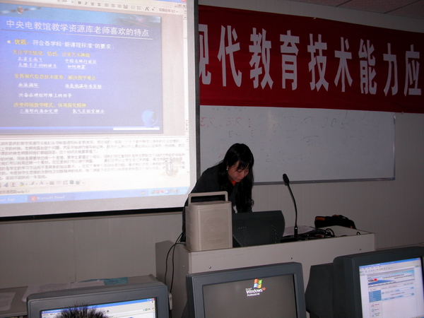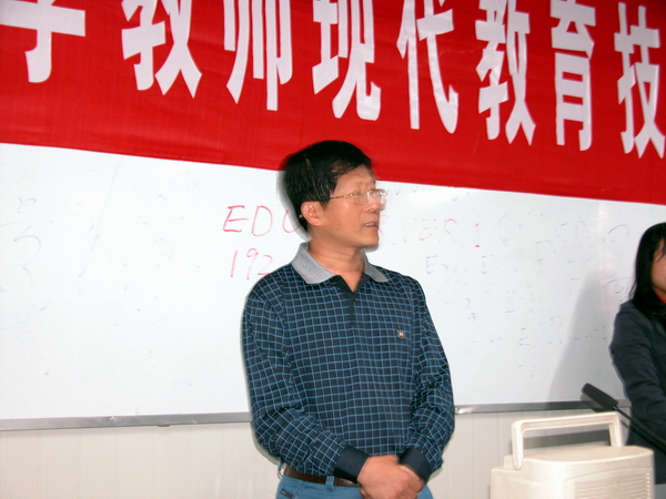 接着眉山市教育局副局长王晋祥讲话,王副局长说,为了响应国家教委的号召,进一步加大、加快现代教育技术的应用,眉山市教育局组建了城域网,通过与中央教科所的合作,引进了先进的教育资源库,使眉山市的教育通过网络与最先进的教育同步。我们这次培训就是使大家学会应用教育网络资源,切实提高眉山市的教育教学水平。