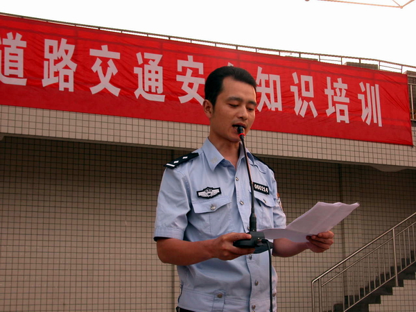 5月21日,在仁寿一中体育场,仁寿县公安局交警大队直属中队刘警官为我校全体师生进行了一场生动的道路交通安全知识培训。 仁寿县公安局交警大队领导十分重视学生的道路交通安全知识教育, 积极配合学校多次到校开展道路交通安全知识宣传, 刘警官再次强调了道路交通安全的重要性,结合《道路交通安全法》 向全体师生提出了道路交通的具体要求,全体师生通过培训,深刻 认识到道路交通安全的重要性,决心把交通安全常放心中,自觉遵 守道路交通法规。