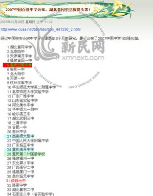 | 2007中国百强中学公布 | |||||