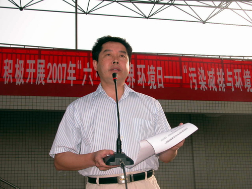 方良元校长在宣读了《仁寿一中关于开展2007年“六·五”世界环境日主题—“污染减排与环境友好型社会”活动方案》后,作了题为《积极开展2007年“六·五”世界环境日—“污染减排与环境友好型社会”主题活动》的报告:一、2007年“六.五”世界环境日主题。二、2007年“六·五”世界环境日中国主题—“污染减排与环境友好型社会”主题标识。三、学校制定了《关于开展2007年“六·五”世界环境日主题—“污染减排与环境友好型社会”活动方案》,主题活动内容是:开展“污染减排与环境友好型社会”的社会实践及征文活动。他号召全体师生员工积极参与“六·五”主题活动,充分发挥大家的积极性、主动性和创造性,不断提高环保意识,减少污染物排放、与环境友好相处,自觉进行环境保护行动。