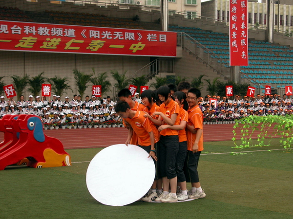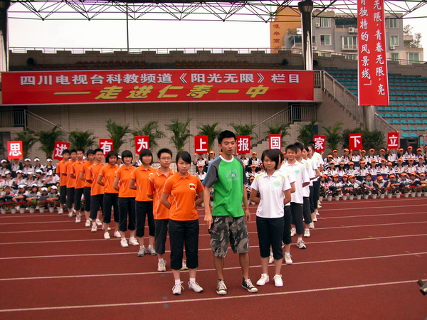 6月21日,四川电视台科教频道《阳光无限》栏目组来到仁寿一中进行《阳光竞技场》节目录制。《阳光无限》栏目是面向四川地区,立足于校园生活的一档青少年节目。其中《阳光竞技场》是面向四川省全体中小学,每期选取一所学校,由学校自行组队,构成各含10人的两支队伍。在两队之间展开德、智、体、 艺的竞技比拼。