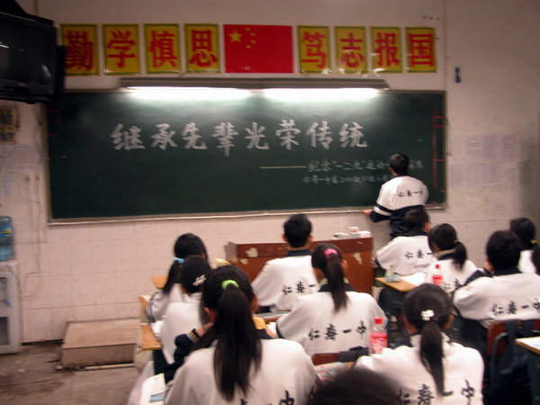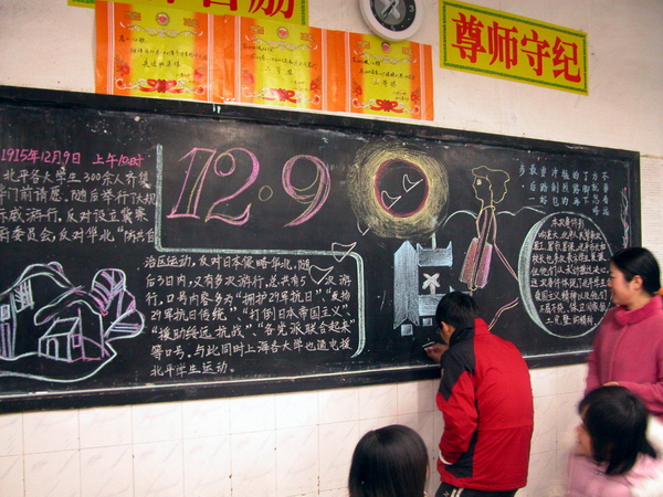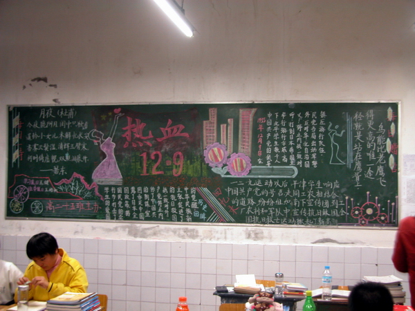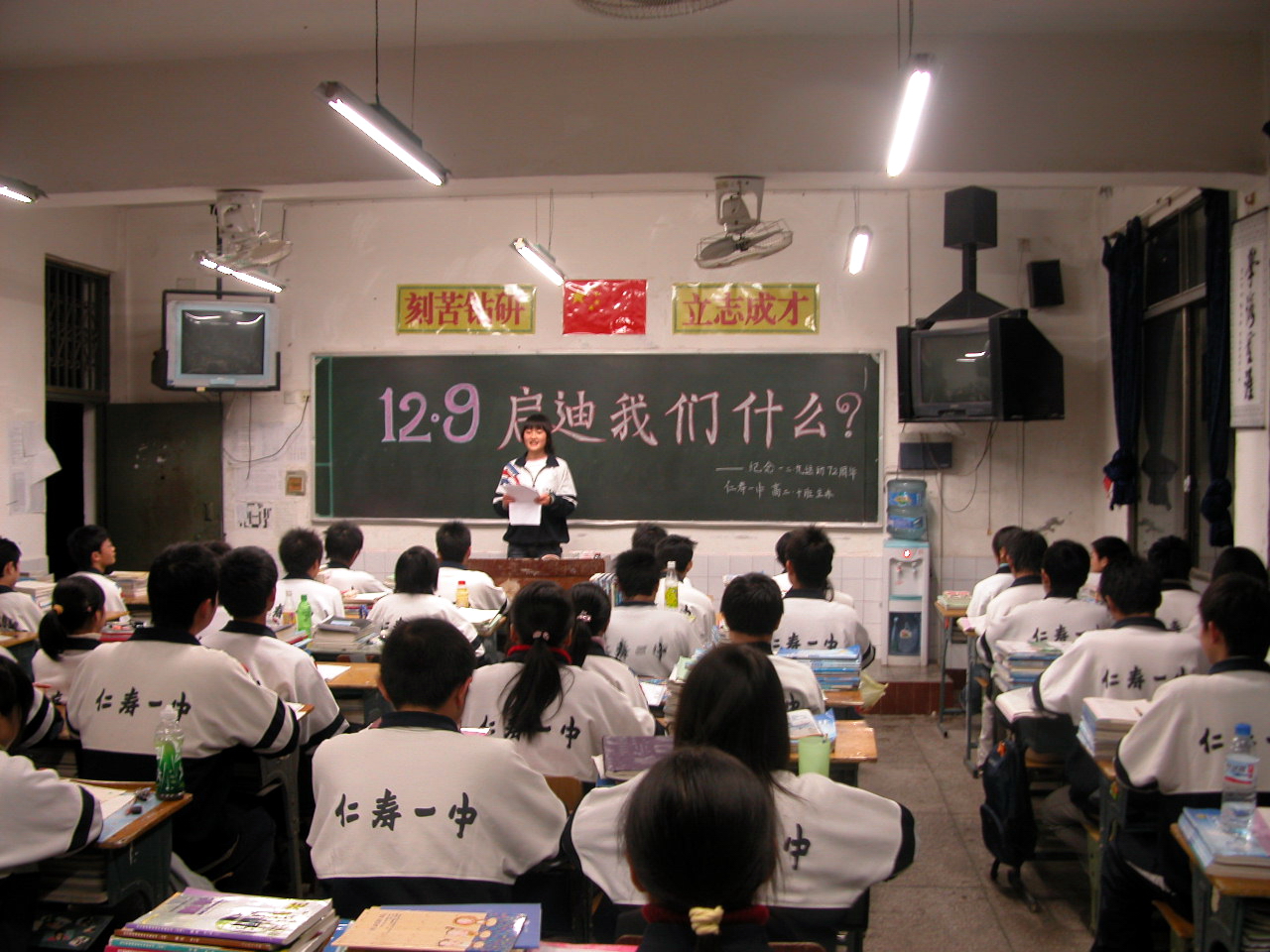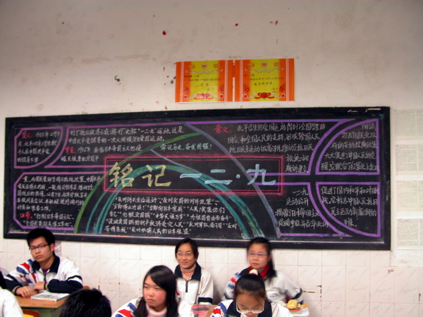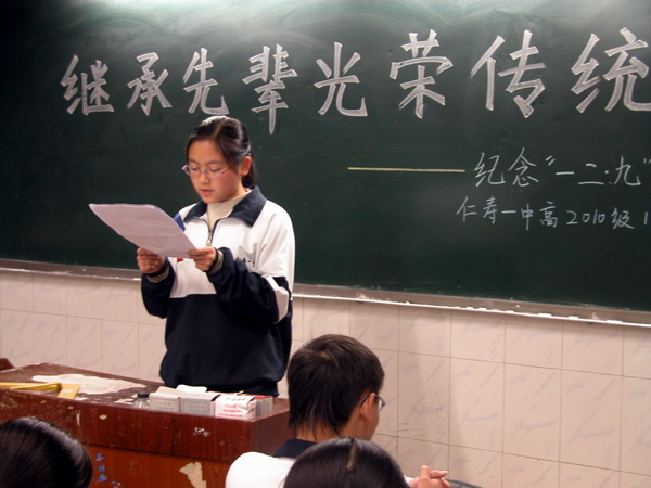 --纪念一二九运动 在纪念“一二·九”运动七十二周年之际,仁寿一中广大师生积极开展系列活动,以征文、板报、主题班会等多种形式纪念“一二·九”运动。 本次活动陶冶了同学们的爱国情操,激发了同学们的爱国主义热情。同学们纷纷表示在缅怀先烈、传承革命精神的同时,更要与时俱进、学好本领、报效祖国。师生们纷纷表示要紧密团结在以胡锦涛同志为总书记的党中央周围,紧乘党的十七大东风,奋发图强,锐意进取,培养中国特色社会主义建设者和接班人。