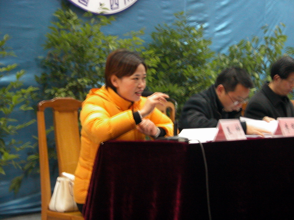 工会委员王昆在主持会议 副校长杨建清在作提案解答