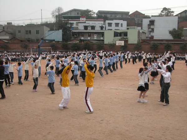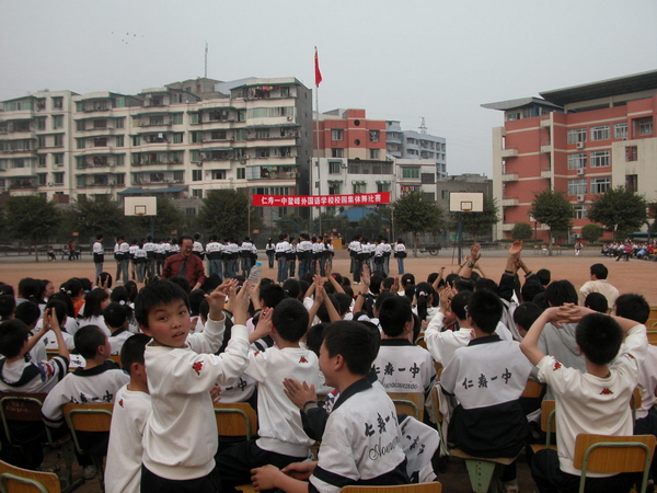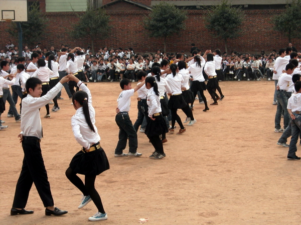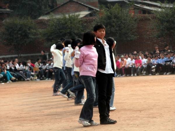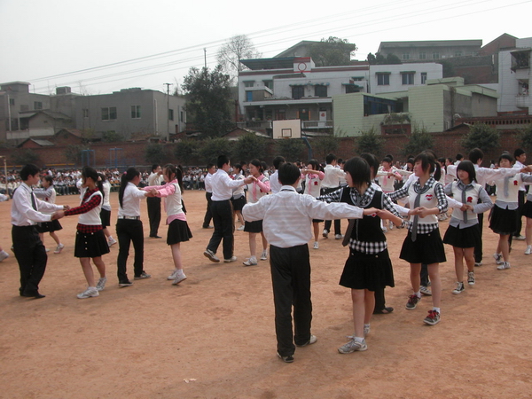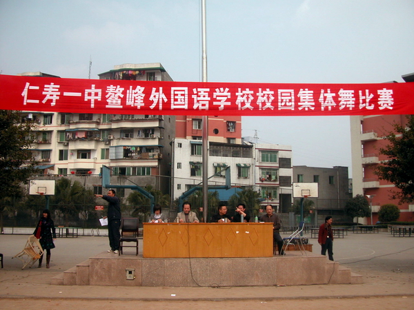 3月14日下午,在这春光明媚阳光灿烂的日子里,仁寿一中鳌峰外国语试验学校的操场上举行了第一套中小学校园集体舞比赛。此次活动是继去年推广校园集体舞以来,为了进一步推进阳光体育工程,丰富校园文化生活,提高学生的艺术修养和审美情趣而举行,同时也是展示检验学习校园集体舞的成果。参加比赛的初中一、二年级30个班根据抽签名次依次进入比赛场地进行表演。随着音乐“青春旋律”,迈着轻快的舞步,牵着舞伴翩翩起舞。他们或是拍手跳跃、或是旋转,都力求做到动作整齐优美、活泼自然,展现出青少年活泼开朗、健康向上的精神风貌。表演到精彩之处获得在场同学们的阵阵热烈掌声!经过近两个多小时的紧张比赛,班班合格,部分班级获得优秀。