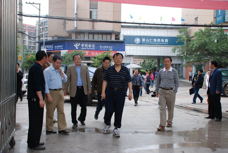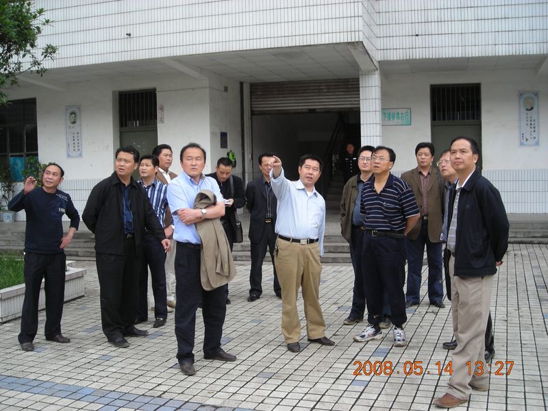 5月14日13:10时,中共眉山市委书记蒋仁富,市委常委、市委秘书长王影聪,市教育局长徐井万在中共仁寿县委书记张 敏,县委副书记、县长李 酌等领导的陪同下,视察了我校的地震灾情。