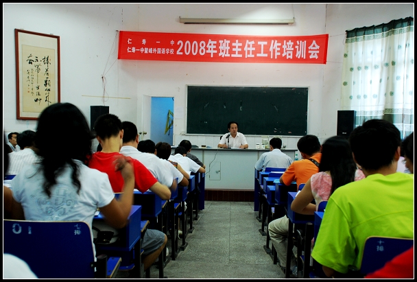 9月5日下午在仁寿一中阶梯教室召开2008年班主任工作培训会。全体班主任及部分相关领导参加了会议。