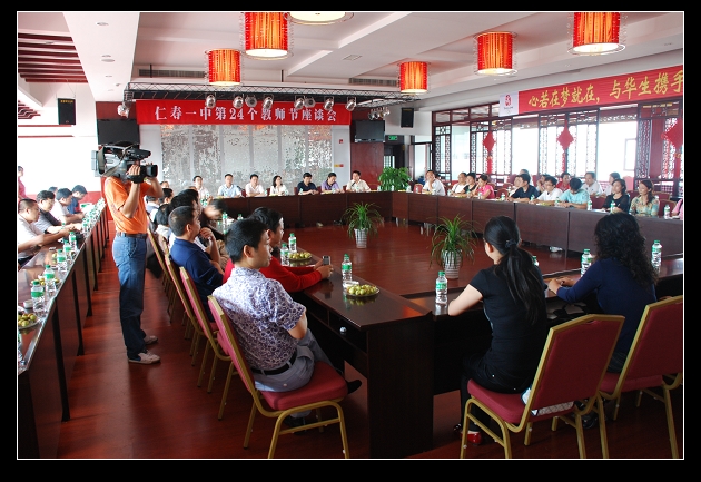 金秋时节稻穗飘香,第24个教师节到来了,“仁寿一中第24个教师节座谈会”于9月10日下午4点在仁寿华生宾馆13楼会议厅举行,全校100多位辛勤耕耘在一线的优秀教师及退修教师、职工代表聚集一堂,以教育部提出的“学习英模教师,弘扬伟大师魂”为主题举行座谈。