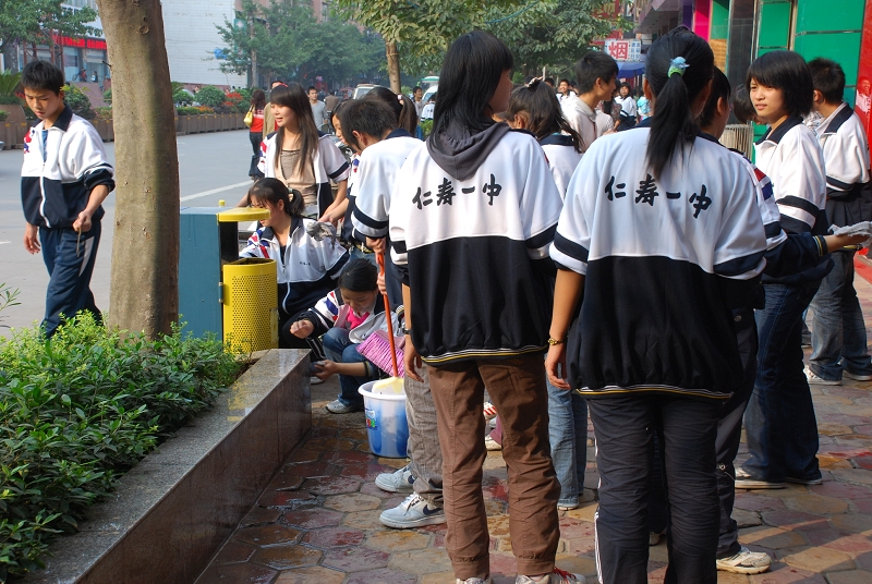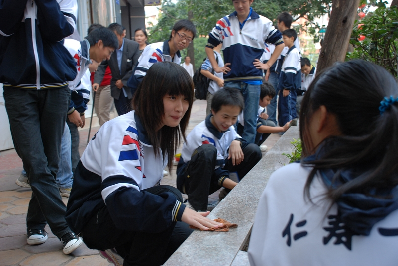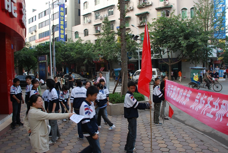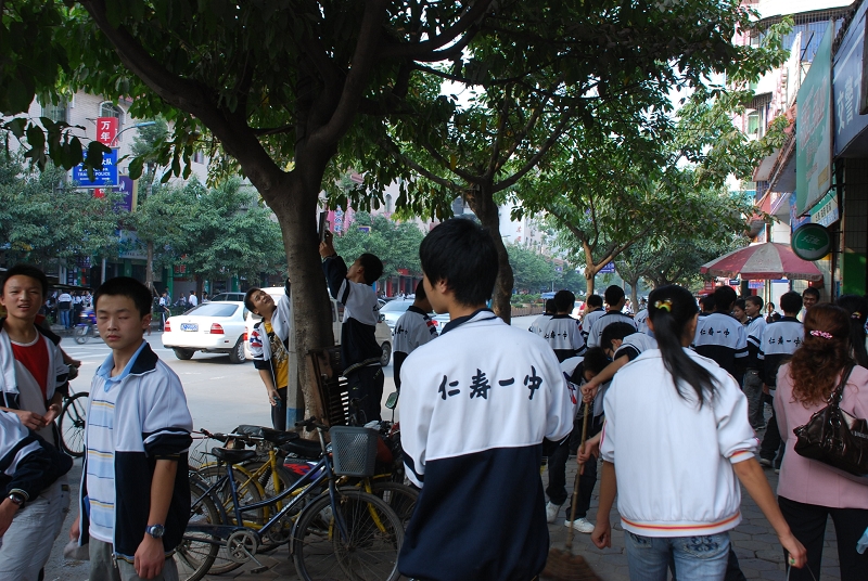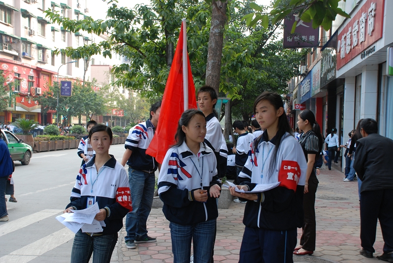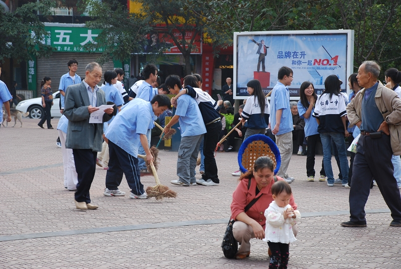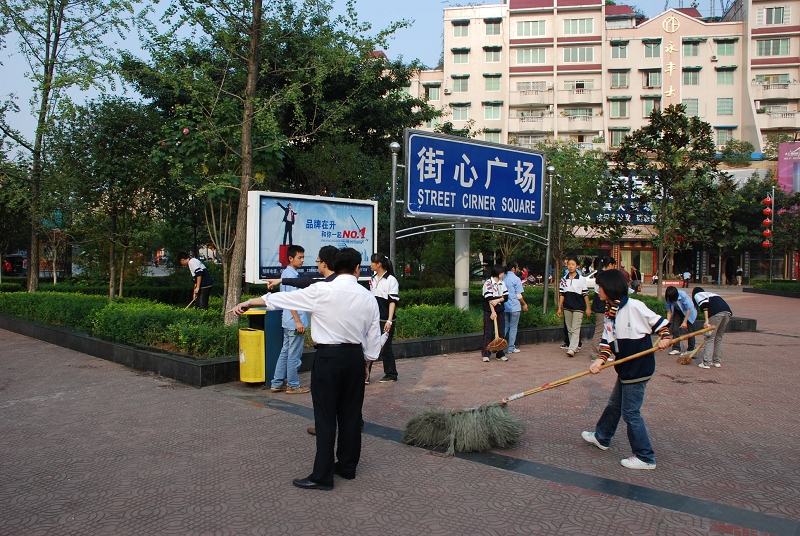 今天下午,仁寿一中除高三、初三毕业班学生以外的六千余名师生上街打扫卫生,积极响应县创卫办的“创卫”号召,上街清理卫生死角,为“创卫”宣传造势。