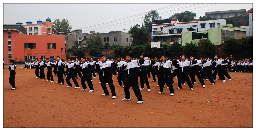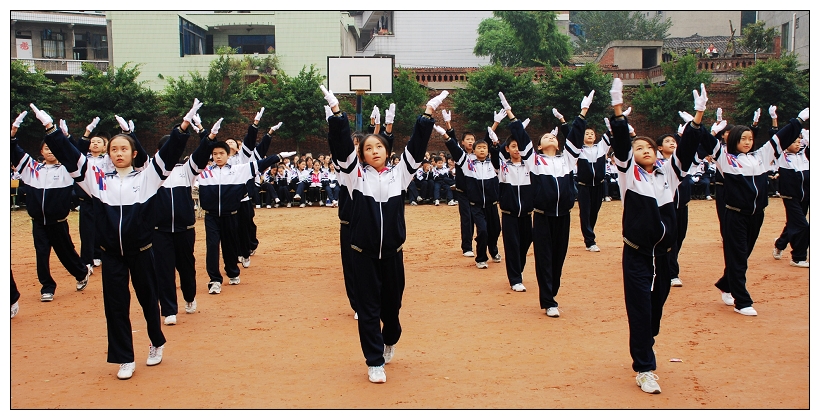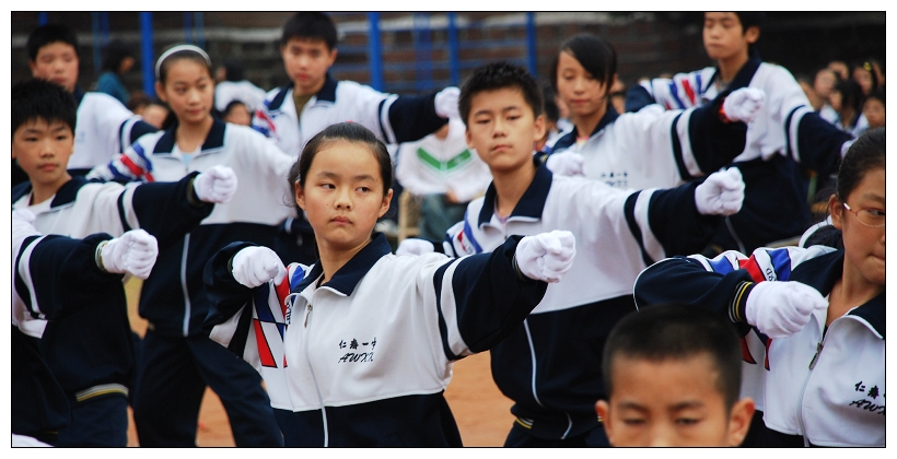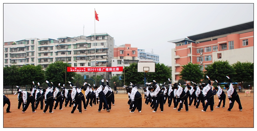 2008年10月17日下午,来自学校高初中2011级36个班的同学分别在高初中体育场参加了仁寿一中2011级广播操比赛。36个班都是经过入学以来的严格规范训练,精心准备来迎接这次比赛的,在比赛过程中,他们精神饱满,斗志昂扬,展现了仁寿一中学生的精神风貌,经过两个小时的激烈角逐,他们都取得了较好的成绩,比赛圆满达成了通过比赛促使平时刻苦训练、通过竞赛促成平时的精益求精,通过比赛促进广播体操水平的全面提高。