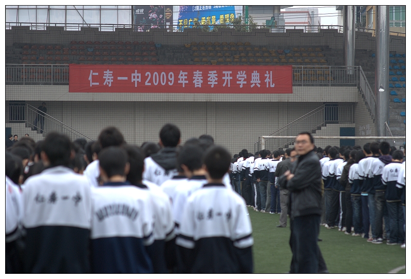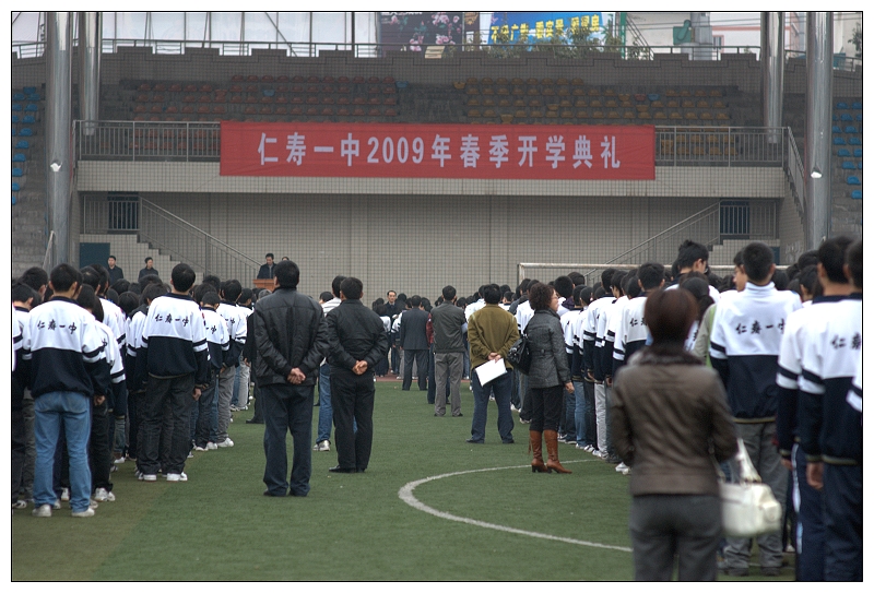 2009年2月11日上午8:30仁寿一中全体师生伴随着雄壮嘹亮的国歌和冉冉升起的五星红旗,隆重的举行了2009年春季开学典礼,迎来了新年新学期的第一天。