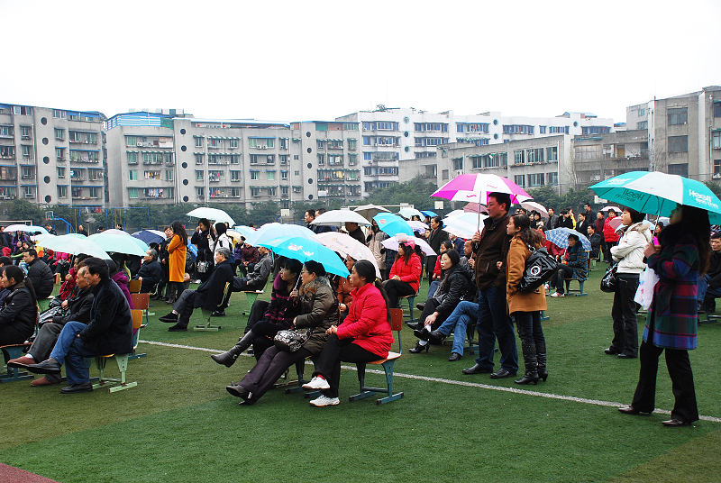3月1日雨,春雨悄然而至,给久旱的大地带来滋润,也给仁寿一中高2010级学生家长带来兴奋与期望。上午9点半,仁寿一中高二学生家长都按时集聚在仁寿一中体育场上,冒着细雨,或撑着伞,或躲在看台上,认真的听取了家长会报告。