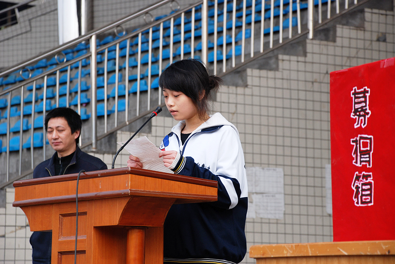 3月5日天气放晴,可说是春光明媚,在这充满暖阳的日子里,仁寿一中迎来了3.5“爱心捐赠日”。仁寿一中“3.5爱心捐赠日”活动至今已经举办了好几年了,仁寿一中多年来郑重的向社会承诺:不让一个热爱学习的学生,因家庭贫困而退学。为了践行这个诺言,仁寿一中长期以来通过各种渠道、方法来解决这个问题,形成了有效的长效机制,“3.5爱心捐赠日”活动就是一个途径,要求全校师生有能力的都献出一点爱心,解囊相助,以实际行动表达对同学、对贫困学生的关心,对和谐社会的支持,使人间真爱在这里浓缩和升华。本次活动在学校领导、学生代表的倡议下,大家热情高涨,各班代表踊跃上台献爱心。大家纷纷表示爱心活动并没有终止,要以社会实践把爱心助学推向更高更远,为构筑和谐社会贡献一份自己应有的力量 。