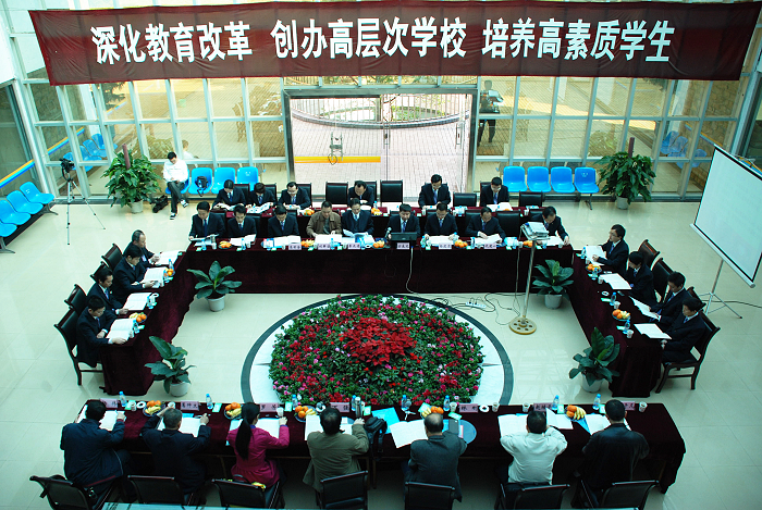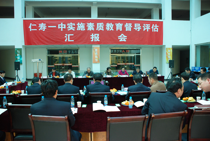 在汇报会上,方校长代表学校对市督导评估组的到来表示热烈的欢迎。仁寿一中是百年老校,蕴含了巨大的底蕴,特别是改革开放30年来,教育教学长盛不衰,仁寿一中人一步一个脚印,踏踏实实走出来,这期间的路,有汗水,有泪水,荆棘丛生,困难重重,但是仁寿一中全体教职员工,在一代代的影响下,在一辈辈的传承下,将辉煌从1978年续写到了现在。曾经一度时期被别人认为是“汗水精神”,其实仁寿一中的不仅仅是“汗水”,也讲“科学”。什么是“科学”,科学就是和谐教育、素质教育。所以才会成为四川省首批办好的重点中学;2002年被省教育厅命名为四川省示范性普通高中;2003年被省教育厅命名为四川省国家级示范性普通高中。学校还获得了 “全国读书育人特色学校”、“中国百强中学”、“全国群众体育先进单位”、 “北京2008奥林匹克教育示范学校”、 “全国绿色学校”、“国家留学基金委出国留学人才选拔基地”、“成都军区国防生源基地”、“四川省文明单位”、“四川省校风示范学校”、“四川省艺术教育特色学校”等荣誉。