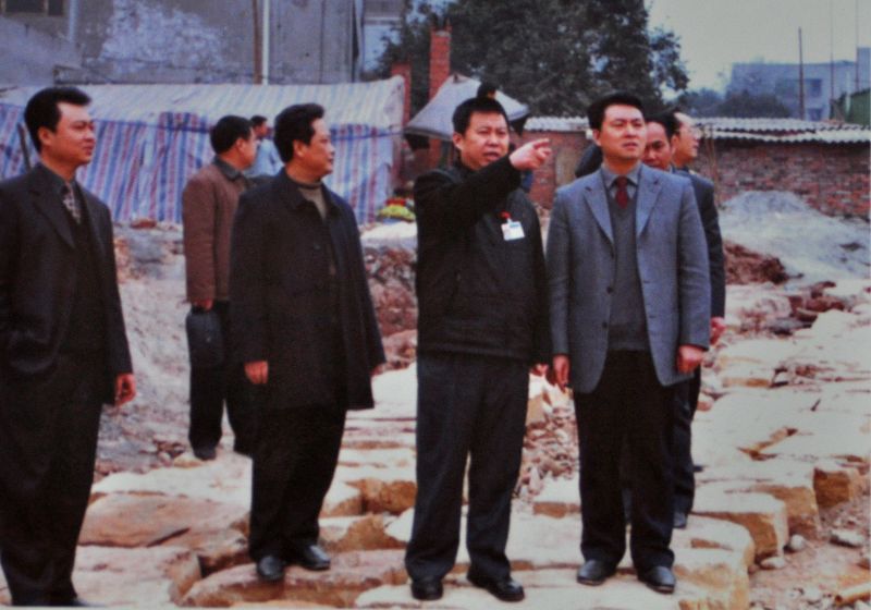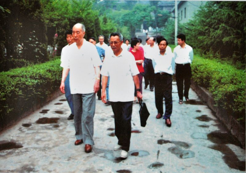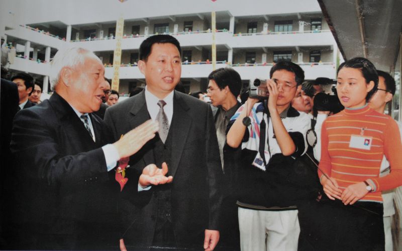 时任国家教委副总督学郭福昌(右二)视察仁寿一中