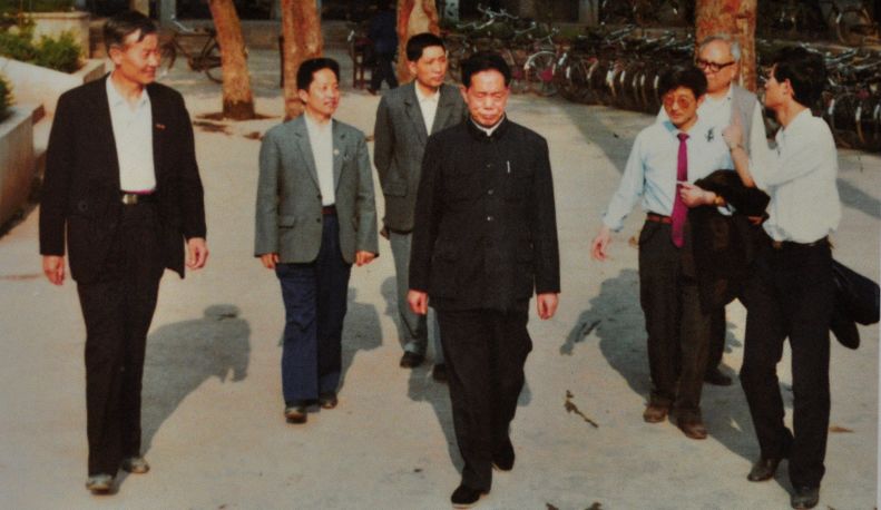 时任中共中央政治局委员、四川省委书记杨汝岱和校长余子勤亲切交谈